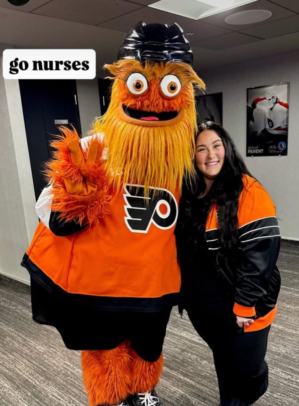 On December 3rd, 2025, the Philly Flyers celebrated nurses with a Nurse Appreciation Theme Night for their game against the Buffalo Sabres. Five nurses selected via an online vote were honored before the game and got to meet the Philly Flyers mascot — the one and only Gritty. As a bonus, everyone who bought a game ticket through an exclusive Nurse.org offer received a Flyers-branded, nurse-themed lunch bag!